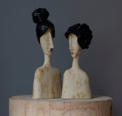 Herbiri birbirinden farklı el yapımı kadın seramik heykeller